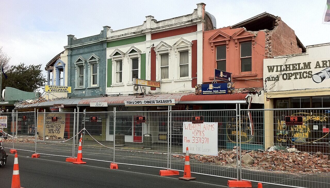 Damage from 2010 Darfield earthquake in Beckenham. Credit: Greg O'Beirne, CC BY 2.0 <https://creativecommons.org/licenses/by/2.0>, via Wikimedia Commons